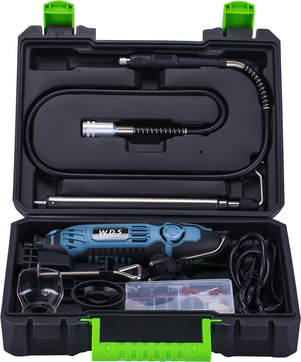 A WDS2520 é uma mini esmerilhadeira multifuncional versátil da WDS, projetada para trabalhos de precisão em oficinas, hobbies e artesanato. Com uma potência de 270 W e uma ampla faixa de velocidade, o dispositivo permite o ajuste preciso dos parâmetros de operação de acordo com o tipo de material a ser processado.